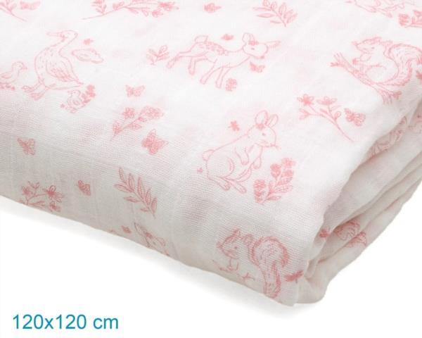 MUSELINA CON ESTAMPADO ROSA DE ANIMALITOS 120X120CM