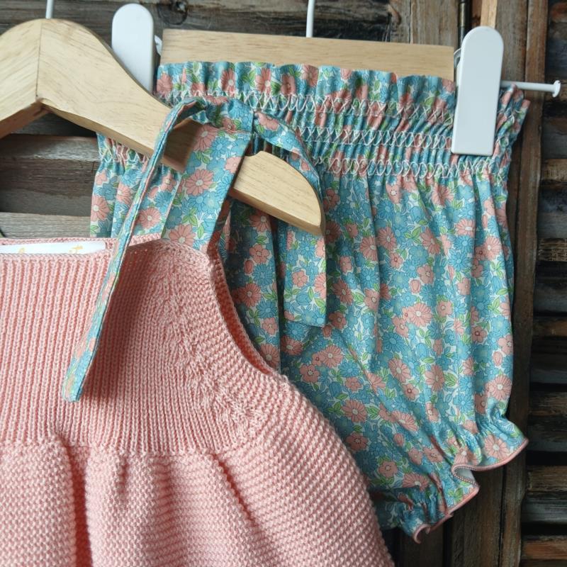 Jesusin punto y culotte smoock liberty y tirantes papaya