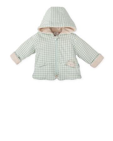 CHAQUETÓN CON CAPUCHA AGUAMARINA CUADROS BEBÉ
